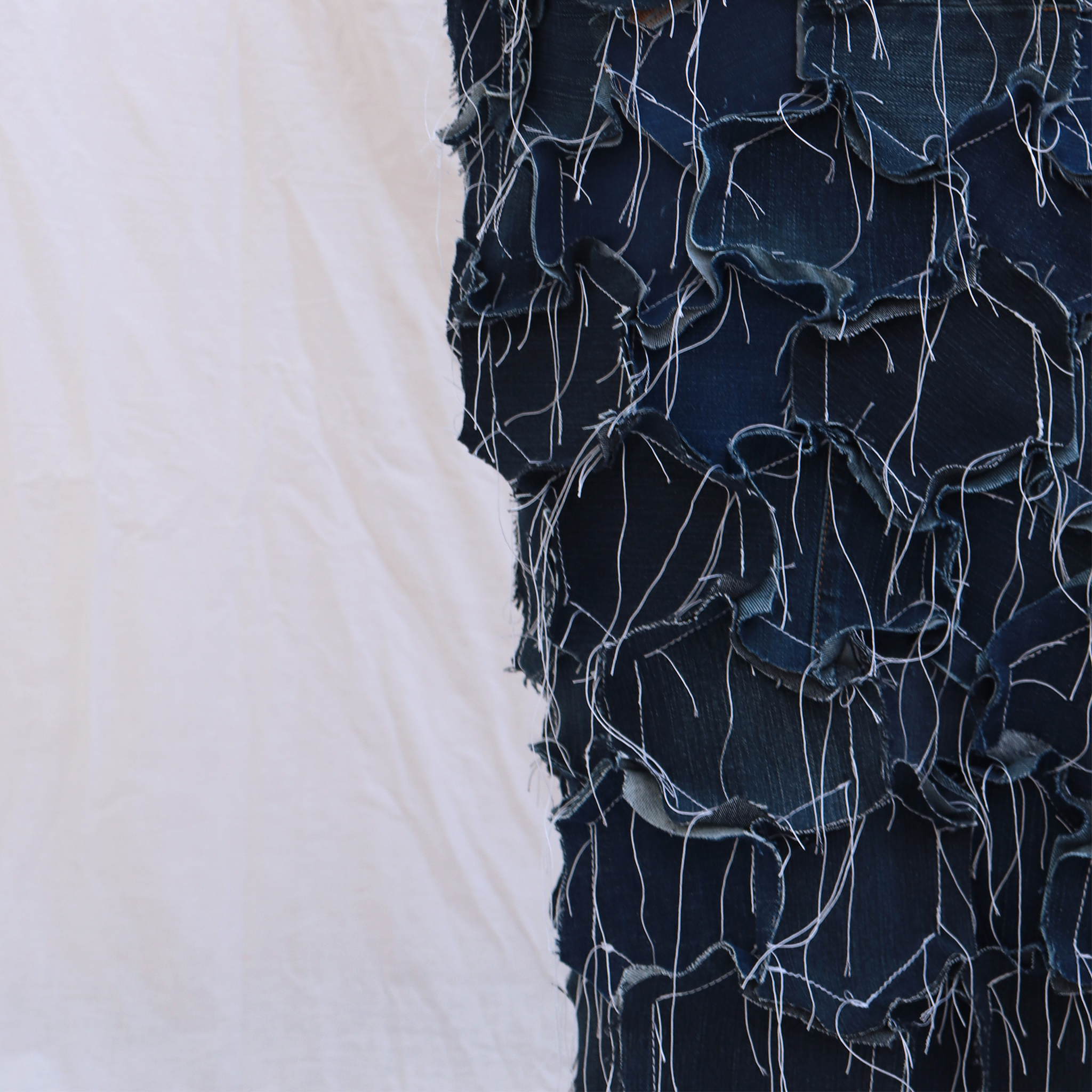 Everything at 1800 Gallons is produced from pre-existing materials - either industry deadstock or upcycled denim pieces. Rather than creating demand for new fabrics or commissioning our own, we like to use an already existing source. In fashion we love the look of worn denim, but instead of faking this with water and machine-intensive processes, why not use the real thing?