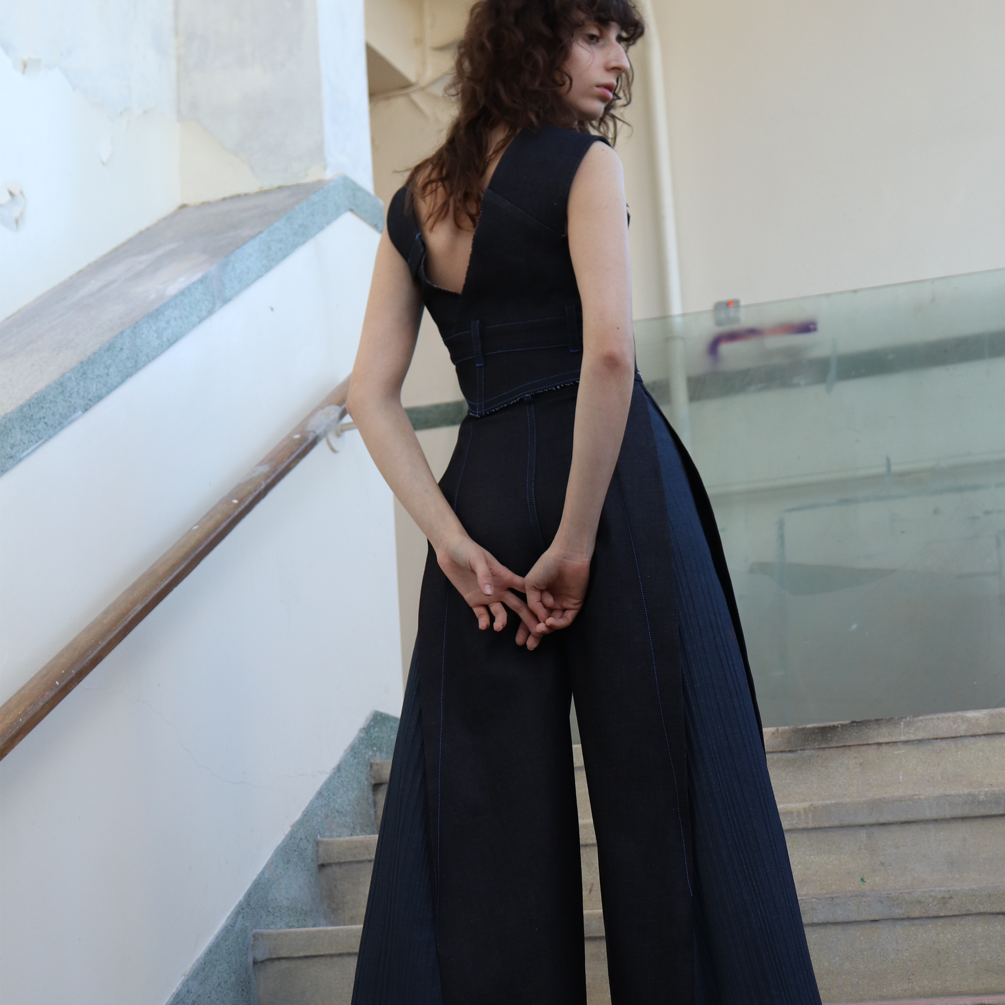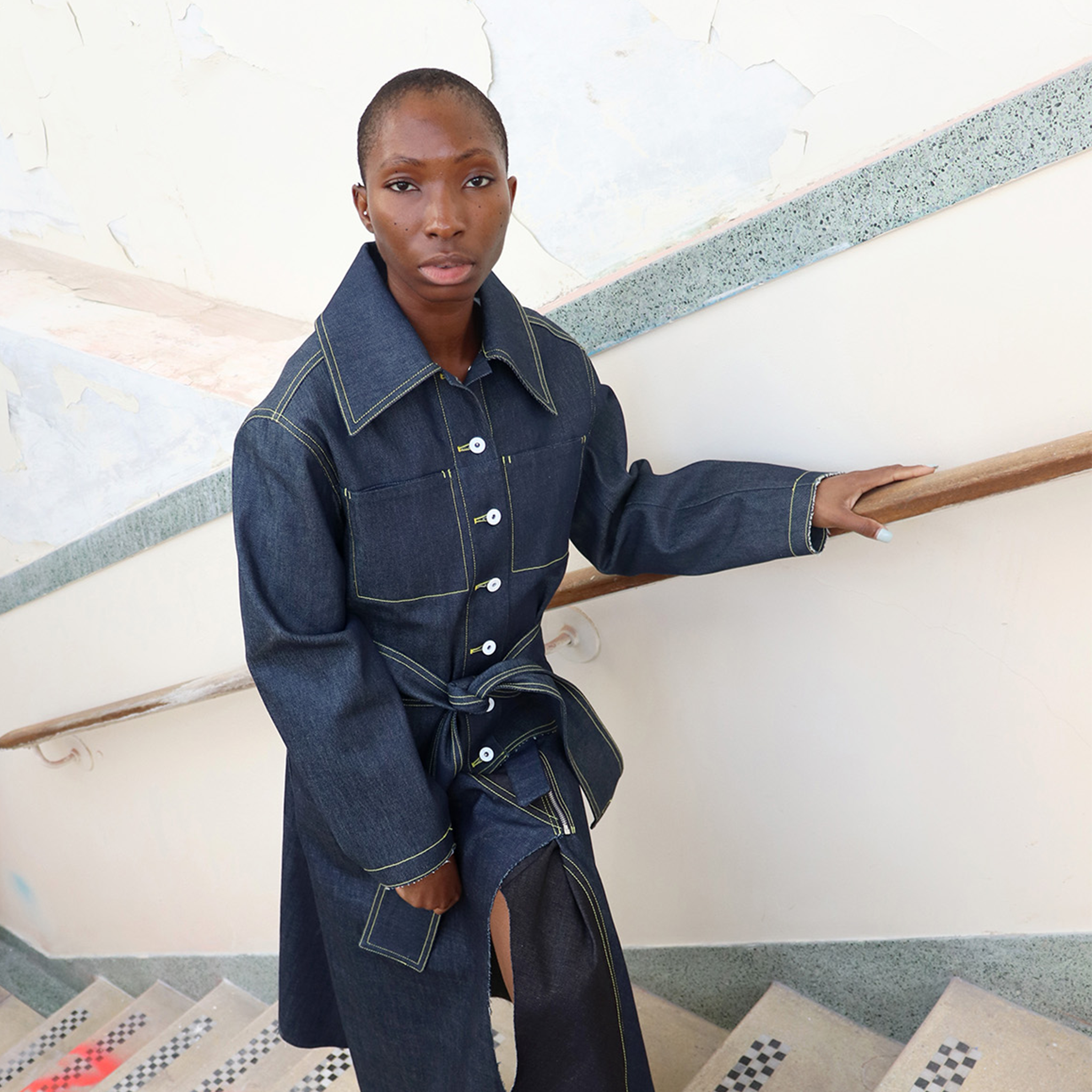 1800 Gallons is a slow fashion label that embraces pre-existing denim and transforms it into something new. It was launched during September 2019 LFW by Emily Tan and offers a core collection of styles that can be customised in material and size. Items are made to order in Tan's Brixton studio and embrace a seasonless model, leading by quality and design rather than trend. Previously Emily has worked at Celine, Marc Jacobs, Rejina Pyo and more.